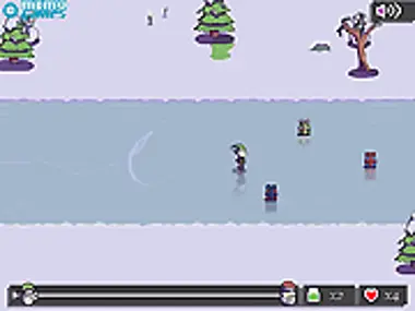 Help Mr. Clause collect the presents he dropped, whilst avoiding falling in the frozen lake and face planting the floor.