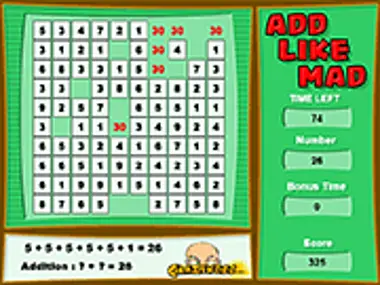 In this game you must click on the squares to add the numbers so that they equal the value under the word"Number".