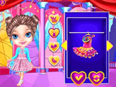 في لعبة التلبيس الجديدة هذه، ستتاح لكِ فرصة تجربة ثلاثة أنماط مختلفة للأميرة الصغيرة: نقشة البولكا دوت، وألوان الحلوى، وموضة الدنيم. يمكنكِ البدء بالنمط الذي يعجبكِ أكثر ثم تابعي مع الأنماط الأخرى. اختاري فستانًا رقيقًا باللون الوردي بنقشة البولكا دوت وزينيه بحذاء رائع، وتسريحة شعر أنيقة، وفيونكة رأس رائعة، وأقراط وردية، وأساور، وبالطبع، حقيبة وردية جميلة.