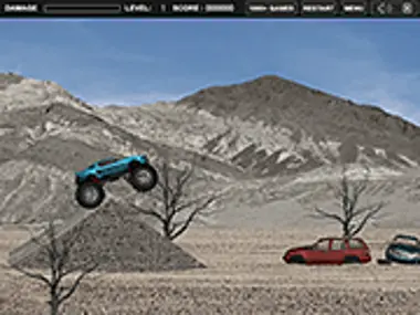 Drive a monster truck over cars and other obstacles while keeping the truck balanced. Complete each level in the shortest time for higher score.