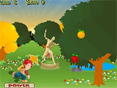 Choose your character and throw objects to make the fruit fall from the tree. Calculate the angle and force with which to cast.