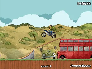 اركب دراجتك التجريبية واقفز فوق أكبر عدد ممكن من العقبات. كلما كانت حركاتك البهلوانية أكثر إبهاراً، زادت النقاط التي تكسبها. بعض الحركات البهلوانية قد تكون صعبة للغاية، فالشقلبة بزاوية 360 درجة مثلاً، تتطلب مهارات جيدة.