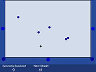 Dodge the blue balls for as long as possible as more and more appear. Grab shield for protection.