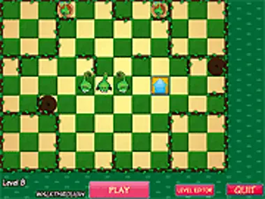 Lay down direction arrows to tell your character & monsters where to move. Get green guys home.
