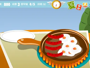 Prepare eggs and hotdogs for breakfast.