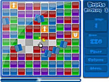 دمر الطوب بالنقر على مجموعات من نفس اللون تتكون من 3 لبنات على الأقل. انقر على لبنة القوى الخاصة لإبطاء الوقت، أو تفجير قنبلة الطوب، أو تدمير صف أو عمود.