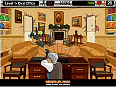عليك إطلاق النار على جميع أعدائك الذين يظهرون أمام ناظريك. علامة التصويب الخضراء تعني أنه يمكنك إطلاق النار. علامة التصويب الحمراء تعني أنك إما أصبت أو تختبئ خلف عائق. يوجد إعادة تحميل تلقائية، ولكن يمكنك أيضًا الضغط على مفتاح R لإعادة التعبئة.