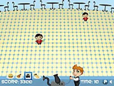 استخدم مفتاح المسافة (SPACE) لإطلاق طبق عملاق يطعم جميع الزبائن.