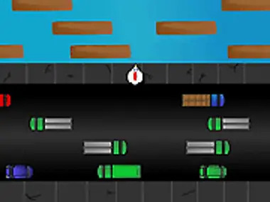 Dodge the car while crossing the street and hog the logs to get to the holes on the other side.