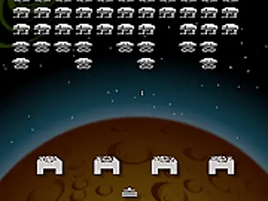 Destroy all invader spaceships by shooting at them. Use space-bar to shoot and the left and right arrow keys to move.