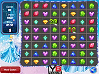 الآن حان الوقت للعبة جديدة شخصيتها الرئيسية هي سندريلا. هذه اللعبة الجديدة والممتعة التي نقدمها لك هي لعبة من نوع مطابقة الجواهر، حيث تريد أميرتك المفضلة منك الانضمام إليها وتكوين بعض أزواج الجواهر الجميلة معًا، لتحقيق أعلى النقاط. تحتوي اللعبة على عدد من المستويات التي ندعوك لاستكشافها، ولكن لكي تتمكن من الوصول إلى المستويات التالية، تحتاج إلى الحصول على عدد معين من النقاط، وهي نتيجة مستهدفة لديك في كل مستوى. المطابقة سهلة، عليك أن تطابق ثلاث جواهر أو أكثر من نفس النوع واللون وستحصل على نقاط مقابلها. تعال وانضم إلينا في هذه اللعبة الجديدة والممتعة عبر الإنترنت واقضِ الوقت مع أميرة ديزني المفضلة لديك، الأميرة سندريلا!