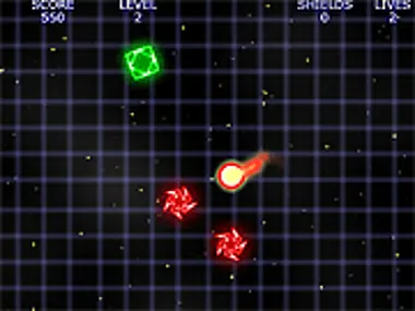 Changes colors to the same as the flying shapes as you touch them to keep playing.