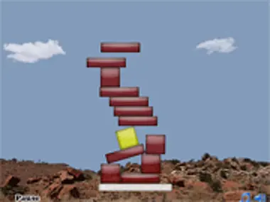 Stack the tower as high as possible in the physics world. Careful, your blocks disappear.