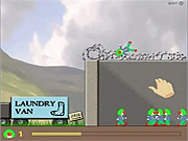 Rescue clowns by picking them up inside the jail and launching them over the wall into the waiting laundry van.