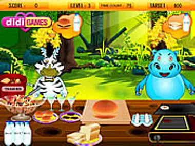 سندويتشات، أكواب فواكه، بيض، براونيز والمزيد! قدّم تشكيلة شهية من أفضل ما لديك لتقدمه لأصدقائك المرحين ذوي الفراء في الغابة! خذ طلباتهم وجهّز وجباتهم. تأكد من خدمة الجميع قبل نفاد الوقت.