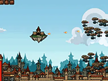 استخدم قلعتك الطائرة الخيالية للدفاع ضد موجات الغزاة الميكانيكيين وإنقاذ الأميرة. استخدم العملات المعدنية لترقية قوتك النارية وتعزيز دفاعك.