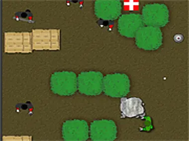 A top-down action shooter. Shoot the soldiers, hide behind objects to dodge fire and reach the end.