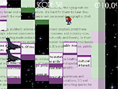 الأمر كله يتعلق بالسرعة. تقنياً، يمكنك التحرك ببطء أو بسرعة كما تشاء -حتى على مستوى البكسل- لكنني أعتقد أنك سترغب في التحرك بسرعة. يجب أن تنطلق بسرعة. انقر للقفز. اضغط مطولاً لقفزات أطول. حاول ألا تسقط في حفرة.