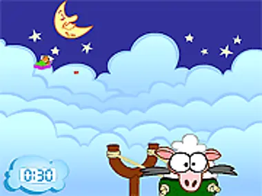 Launch the sheep and hit Garfield and other items to keep Garfield from waking.