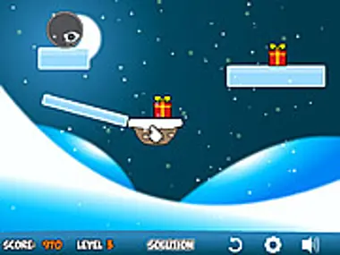 Remove sheets of ice to create physic movement & reactions to get all the presents on the ground.