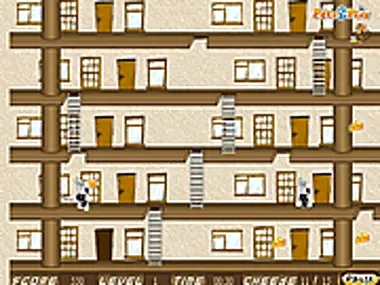 You are guiding this hungry kitten who loves to eat cheese. Sadly, you are being chased by others who don't want your to eat everything.