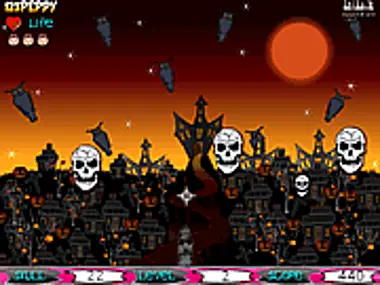 Shoot the skull that appear from behind the halloween trees and Halloween house. Shoot them before they come closer to you. You have 5 lives, which will be lost if you fail to shoot them.