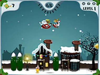 شارك الهدايا مع جميع الأطفال في الشارع وفي مداخن المنازل لتضيء منازلهم بالسعادة. استخدم الأسهم للطيران فوق المنازل ومفتاح المسافة لرمي الهدايا.