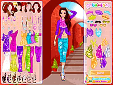 Carry spends her holiday in a beautiful city from Europe. She really loves visiting other cities and meeting new people. She came here with her best friend and they have such a wonderful time together. To remember the beautiful places she is visiting, Carry likes to take photos of her in these places. Right now she asked her friend to take another photos with her. She wants to look really cool in the picture, to be dressed up in trendy clothes and chic accessories. Help her with that! Show what a good stylist you can be! Dress up Carry with the coolest outfit you can find in this cool summer fashion collection. Then, change her hairstyle, chose a pair of shoes, a bag and some accessories to fit the clothes. Enjoy!