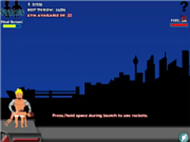Humerous launch game involving a skinny nerd & muscle man