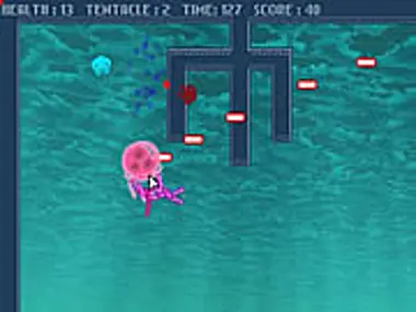 A turn-based strategy/combat game. You have to control the big jellyfish to kill all the small jellyfish using tentacles.