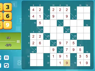 ادخل عالم Kakuro Master، لعبة ألغاز أرقام محفزة للعقل تمزج منطق Sudoku مع بنية الكلمات المتقاطعة. هدفك بسيط ولكنه مليء بالتحدي: املأ الشبكة بأرقام من 1 إلى 9 بحيث يبلغ مجموع كل صف وعمود الدليل المعطى. ولكن تذكر لا يمكن لأي رقم أن يتكرر داخل نفس المجموع! العب 4 مستويات من Kakuro. حل الألغاز وفقًا لقواعد Kakuro: املأ رقمًا من 1 إلى 9 وتأكد من أن مجموعها يطابق الدليل المقابل. العب المزيد من الألعاب على Y8 - أكبر منصة ألعاب HTML5 حديثة!