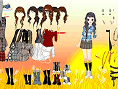 This girl loves plaid clothes. Because of that, she collected a bunch of plaid-themed outfits. Select an outfit that will match her taste of style.