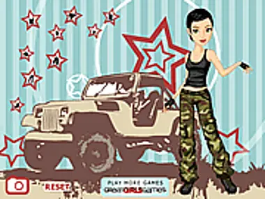 This girl is a very courageous young lady who works for the Army. She is a non conformist girl who loves adventure. But she is also a chic girl who wants to look cool all the time. That's why she has special army uniforms that fit her style. Help her get dressed for a new adventurous day. Choose the military outfit you like best from her wardrobe and some cool accessories! You can also change her look by choosing a new extravagant hairstyle!