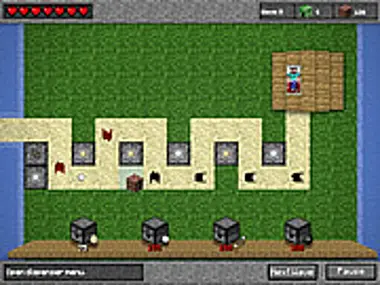 أولاً، تحتاج إلى شق الطريق الذي سيعيدك إلى منزلك. هذا المسار نفسه ستستخدمه أيضًا وحوش ماينكرافت المتجولة. كلما حفرت أكثر، كلما اكتسبت المزيد من الموارد. كلما كان المسار أكثر التواءً، زاد الوقت الذي تستغرقه الوحوش للوصول إليك. مع 4 صناديق موزعات للشراء، و 4 فخاخ بكسلية للاستخدام - وكلها قابلة للترقية، أنت وحدك من يستطيع الدفاع عن منزلك في Minecraft Tower Defense!