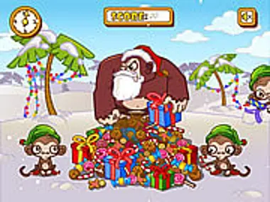 Steal presents from the gorillas pile without being caught. Only take candy when he's not looking.