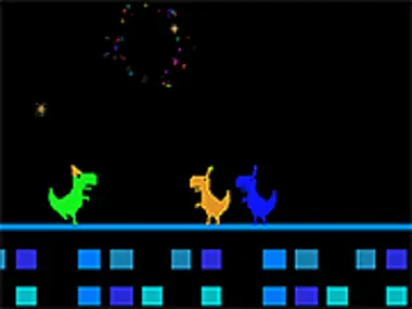 Dino Run يحتفل بالعام الجديد وأنت مدعو لأفضل حفلة على السطح في المدينة! حافظ على الديناصور حيًا لأطول فترة ممكنة عن طريق القفز فوق حفلات أسطح المباني.