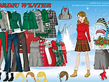 ألا تحب وحسب المنظر الشتوي الأبيض الجميل والكوخ الأحمر الدافئ؟ أراهن أن هناك نارًا دافئة ومتقدة في الداخل! ألبسي الفتاة أزياء شتوية دافئة وأنيقة مع لمسة خفيفة من أجواء الكريسماس باستخدام الألوان الخضراء والحمراء. إنها لعبة فريدة جدًا، ربما لم ترِ لعبة تلبيس كهذه من قبل!