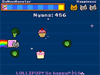 Switch which track the Nyan Cat is on. Eat all the candy while avoiding the vegetables.