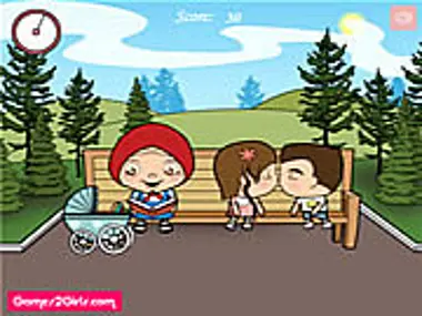 Use mouse and click on boy or girl for them to kiss each other. Kissing will earn you points but avoid getting caught or its game over.