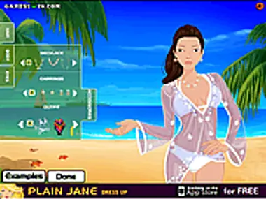 Plain Jane - Swimming Lessons هي لعبة تحتوي على 1 مستويات. انقر على الألسنة الموجودة على الجانب الأيمن من الشاشة للبدء في التجميل. انقر على 'أمثلة' لإلقاء نظرة خاطفة على كيف يجب أن تبدو جين. انقر على 'تم' عند الانتهاء.