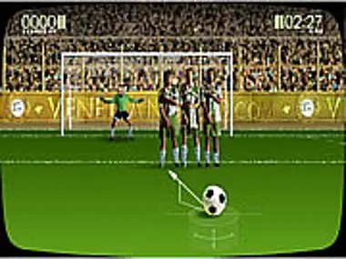 Kick the ball passed the soccer players and try to score goals by adjusting power and angle.