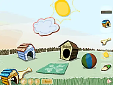 How to play Pet Home Designer: Puppy's Yard: To see your choices, click on the pictures on the right side of the screen.