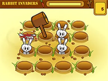 The famous hammer game with rabbits! Do not let them out of their burrows or hit them with your mace!