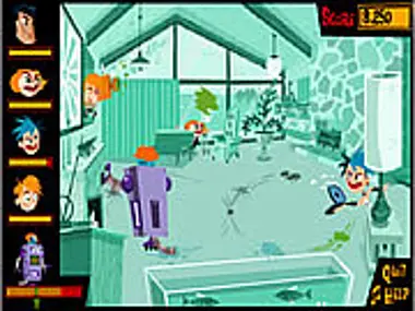 Take down the robot in the kitchen by clicking on items and people that hurt the robot.