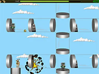 Help Robbie rescue Santa's elves. Use arrow keys to move, shift to jump and F to fire.