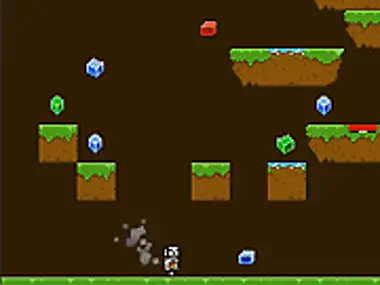 This little robot has fallen into a deep hole. Help him by upgrading his abilities and get up to the surface.