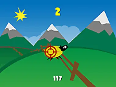 Use the mouse to shoot, you can shoot the sheep or the wolves when the gunsight become red.