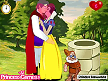 Princess Snow White kissing the prince. Make sure she don't get caught.