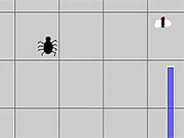 Run around and eat the flies but avoid those laser turrets from hitting you.