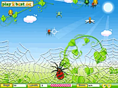 The big red and black spider has built a grand web home to live in and the other insects are marching up to destroy the home. Make the spider to eat all the insects before they come closer to the web. Use the mouse to place the focus point on the insects and press the left mouse button to make the spider eat the insects. If you let any insect to destroy the web, the power at the bottom of the screen keeps reducing. Finally, when the power becomes empty, the spider falls down and dies and the game gets over. Even if an insect comes in contact with the spider, the spider dies. As the level of the game increases, the insects come at a faster pace. Try to complete all the levels before the power goes down.